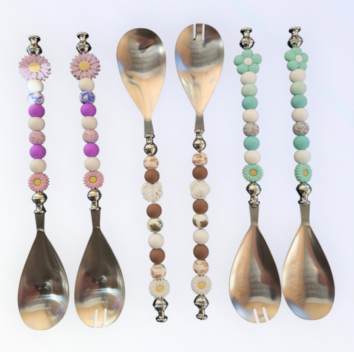 Ce sont des couverts de laboratoire est un ensemble de service pratique et se compose d'un cuillère de service et fourchette de service avec une forme ergonomique et des billes de silicone qui permettent de ramasser et de mélanger les salades sans effort.